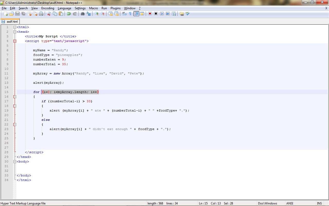 alert (myArray[i] + ” ate ” + (numberTotal-i) + ” ” +foodType+ “.”);}